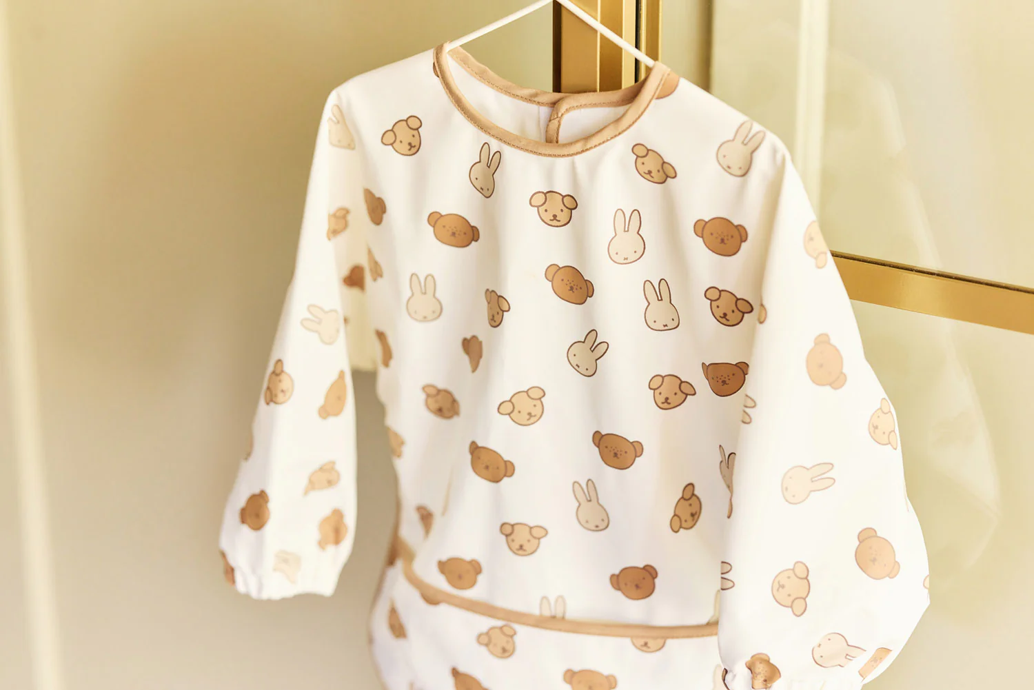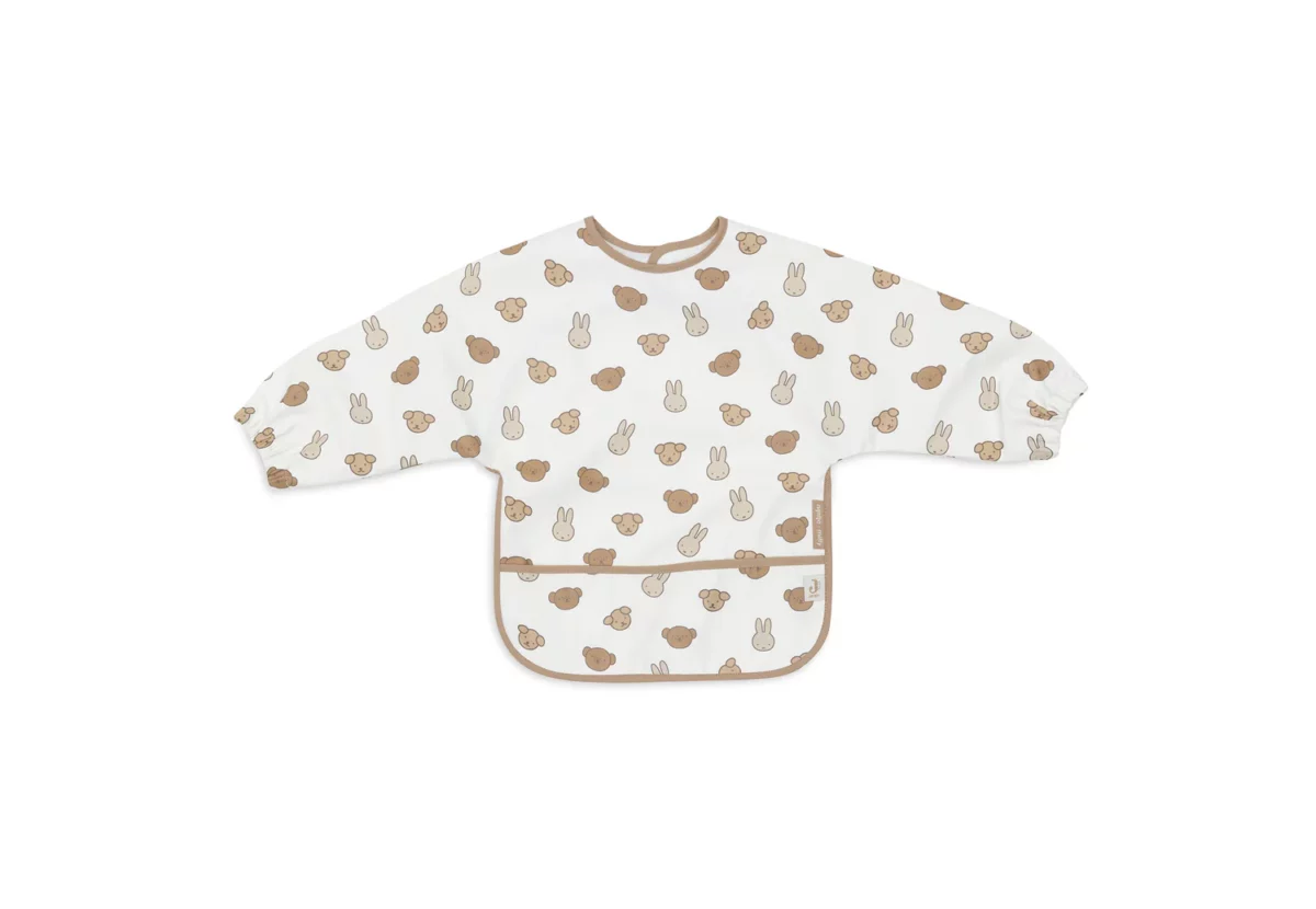 Ce bavoir à manches imperméable de la collection Miffy and Friends est idéal pour les repas. Le tissu empêche l’humidité de passer et les manches protègent des éclaboussures. L’imprimé Miffy rend ce bavoir à la fois pratique et adorable. Confortable, utile et joyeux !