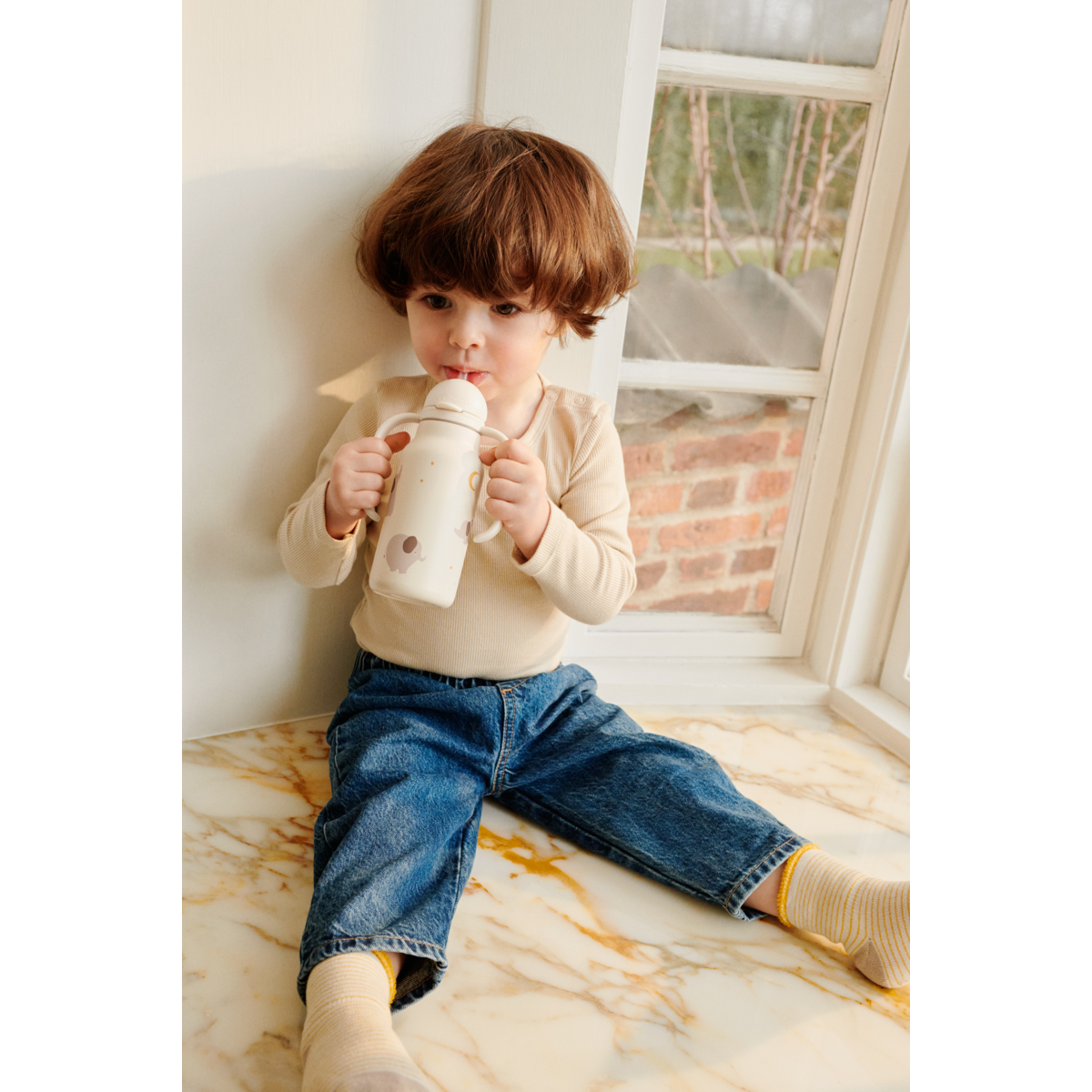 Cette gourde innovante et adaptée aux tout-petits, la bouteille KIMMIE, possède deux poignées faciles à manipuler sur le couvercle ainsi qu’une paille intégrée, et est fabriquée en acier inoxydable. Elle est conçue pour être facilement manipulée par les petites mains apprenant à incliner et boire de l’eau seules.
