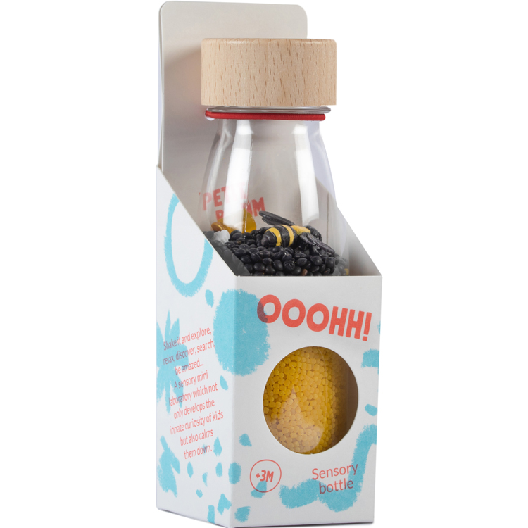 La bouteille sensorielle Sound Abeilles de la marque Petit Boum émerveillera votre tout-petit. De jolies couleurs et de belles lumières pour développer les sens de bébé. Cette bouteille s’appuie également sur la pédagogie Montessori afin que bébé puisse apprendre à gérer ses émotions. En la regardant, votre enfant se détendra et pourra stabiliser son humeur.