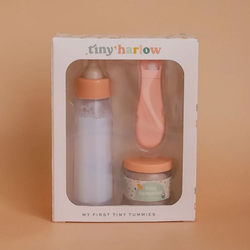 Offrez à votre enfant une expérience de jeu tendre et réaliste avec la Box Mon premier petit pot Lait et Céréales pour poupée de Tiny Harlow !