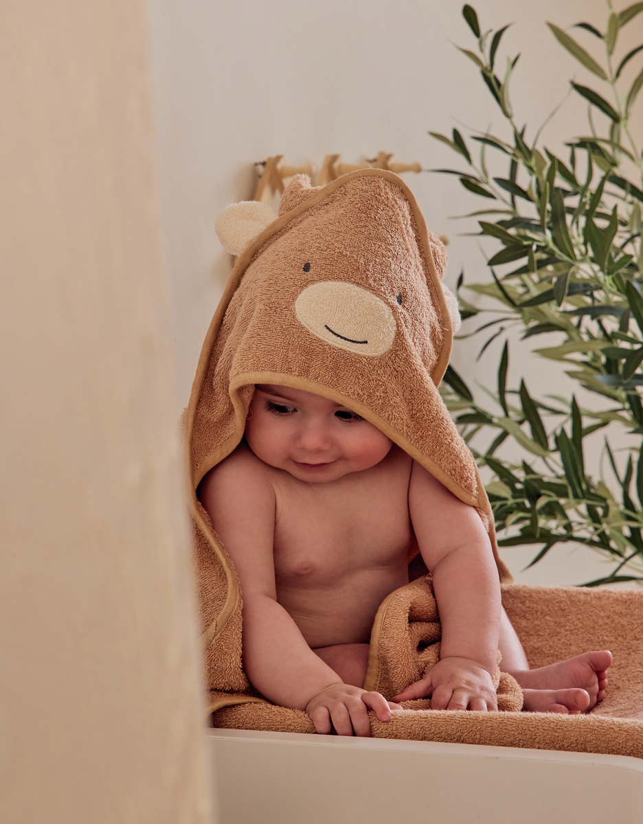 La cape de bain Fluffy est confectionnée dans une éponge particulièrement épaisse pour offrir à bébé douceur, dans une teinte beige, chaleur et absorption dès la sortie du bain. Sa capuche intégrée et son gant de toilette assorti en font un ensemble aussi pratique que réconfortant, parfaitement adapté à la peau sensible des tout-petits.