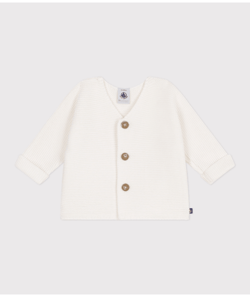 Gilet en tricot point mousse moelleux : indispensable pour les premières semaines des bébés !