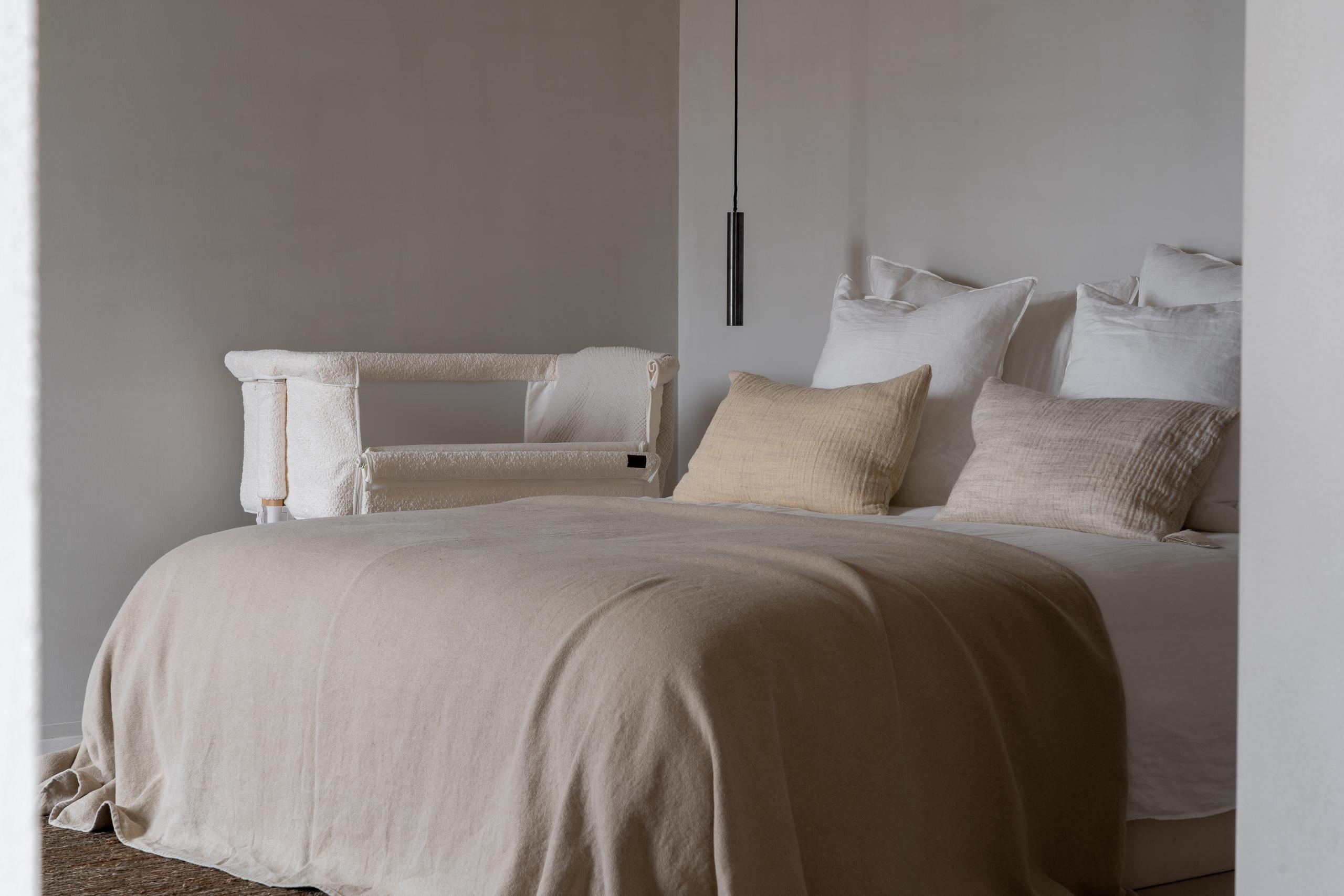 Le berceau est disponible en tissu matelassé intemporel en argile ou en tissu bouclé doux, ce qui le rend non seulement fonctionnel mais aussi confortable et accueillant dans votre chambre. Des roulettes pratiques facilitent le déplacement du berceau dans la pièce. Les pieds ont une apparence naturelle en bois, donnant au berceau une allure élégante supplémentaire. Laissez le co-sleeper Side by Side être un élément fonctionnel et élégant pendant ces moments précieux avec votre bébé.