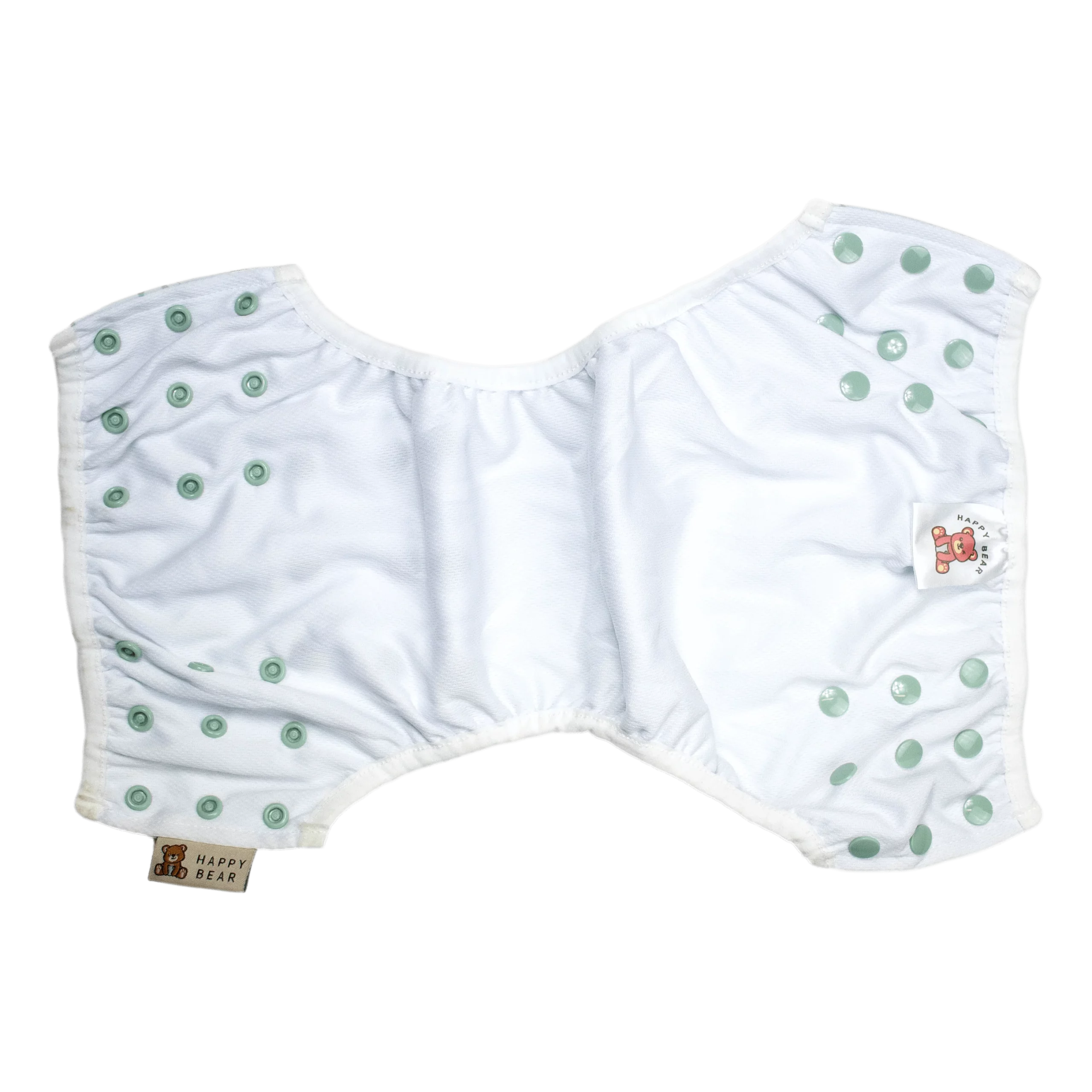 La couche de bain lavable est compacte, légère, ajustable en taille et durable. La couche de bain lavable peut être utilisée de la naissance à 2-3 ans environ. Assurez-vous que la couche de bain s’adapte bien autour des jambes et du torse pour éviter que les selles ne s’écoulent. Il n’est pas nécessaire d’utiliser une couche de bain jetable sous la couche de bain.