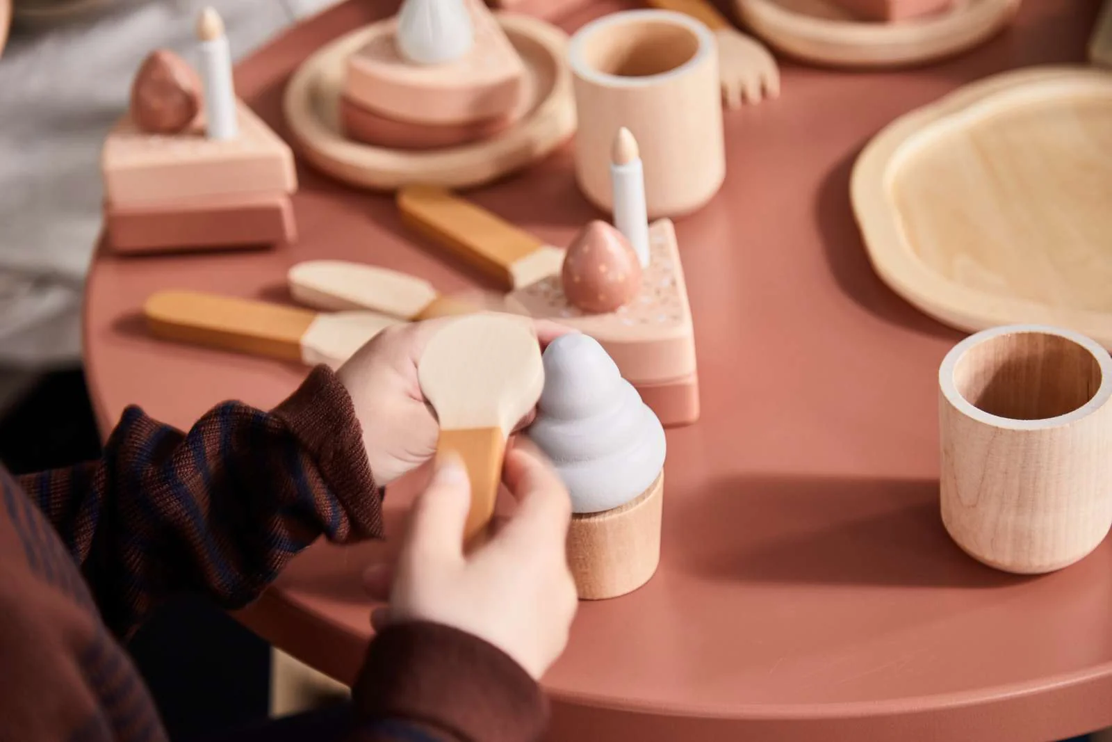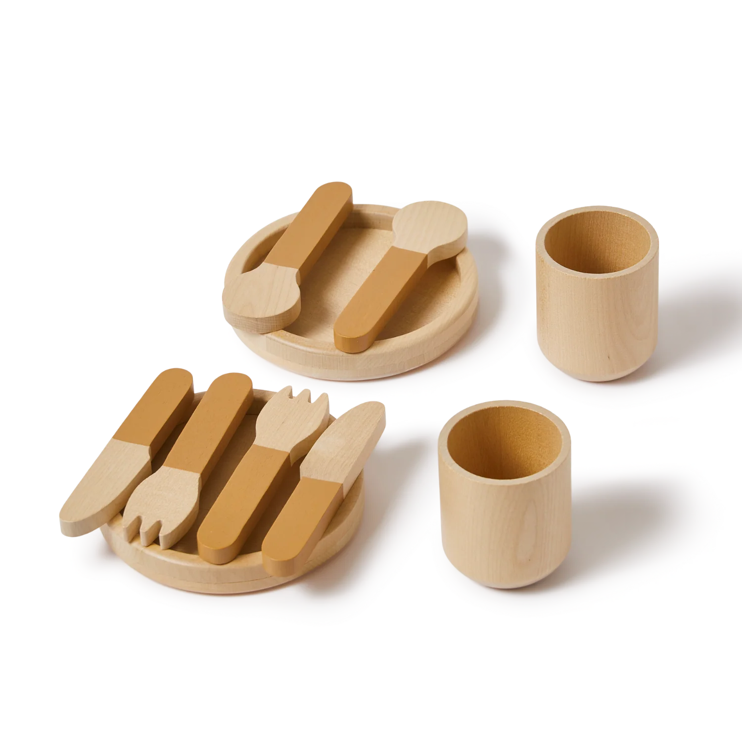 Laissez votre enfant s’entraîner à prendre soin des autres avec cet ensemble d’assiettes, de couverts et de tasses en bois. Avec cette dînette, le jeune chef cuisinier à l’avenir prometteur saura organiser des repas et s’occuper avec soin de chaque invité.