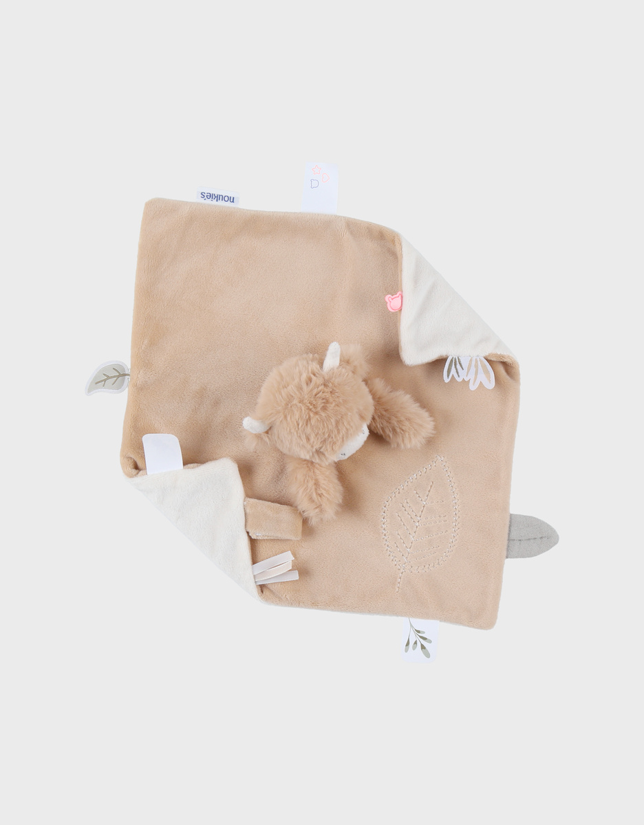 Avec sa fourrure beige toute douce en Veloudoux®, Fluffy la petite vache est le doudou idéal pour accompagner bébé dès ses premiers jours. Discrètement brodé de motifs inspirés de la nature, il apporte tendresse et apaisement au quotidien.