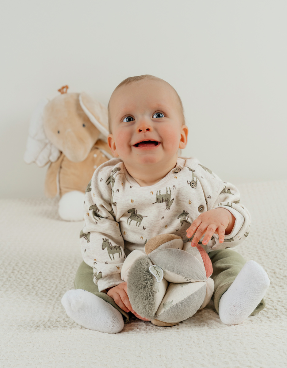 Cet ensemble 2 pièces de Noukie’s comprend un sweatshirt gris chiné avec un charmant imprimé zèbre et un jogging kaki à taille élastiquée. Il allie praticité, douceur et style, parfait pour la mi-saison.
