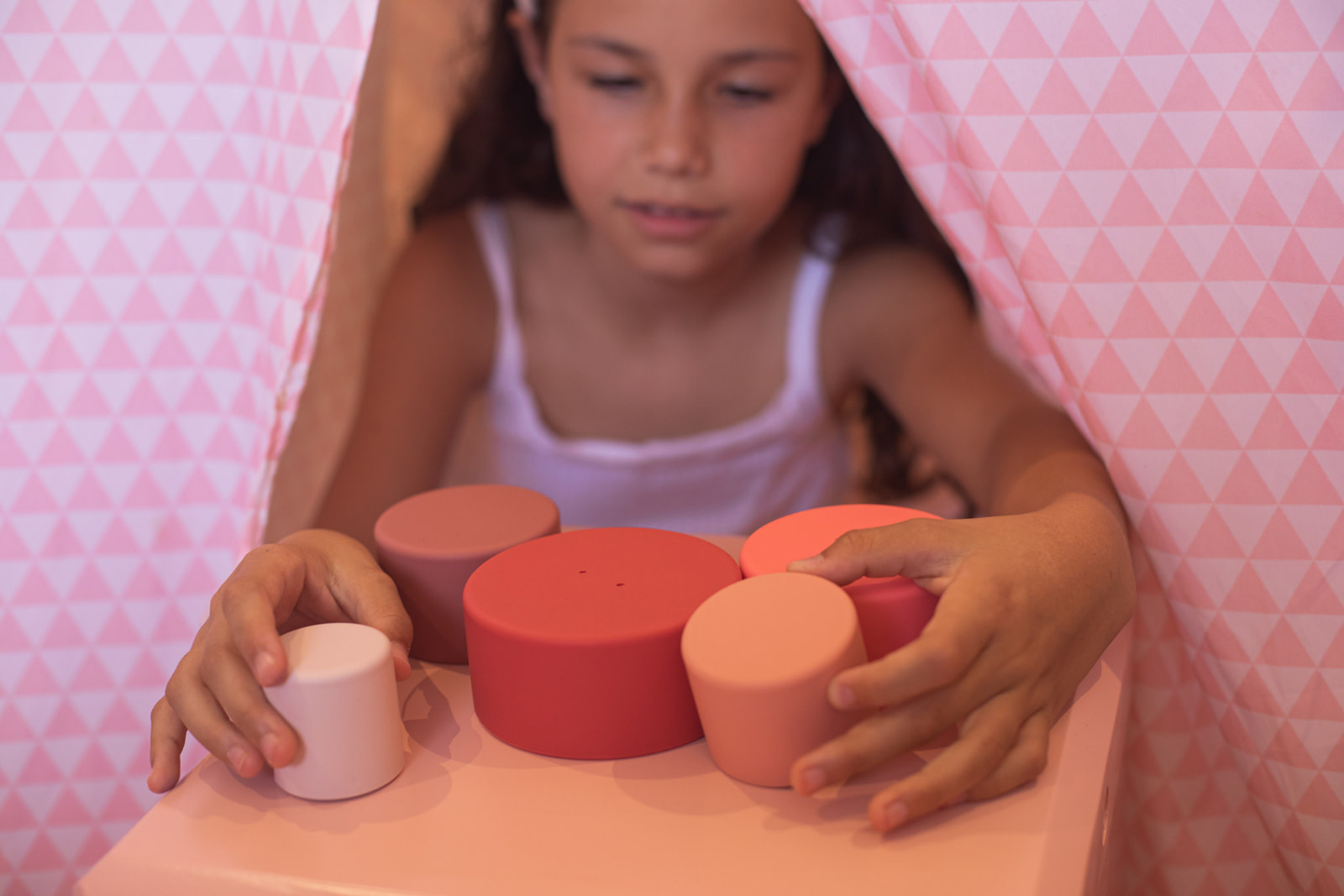 Leur design épuré en fait des jouets polyvalents et ouverts, qui invitent au jeu libre : constructions, jeux d’imitation, découvertes à l’intérieur comme à l’extérieur, ou encore moments ludiques dans le bain…