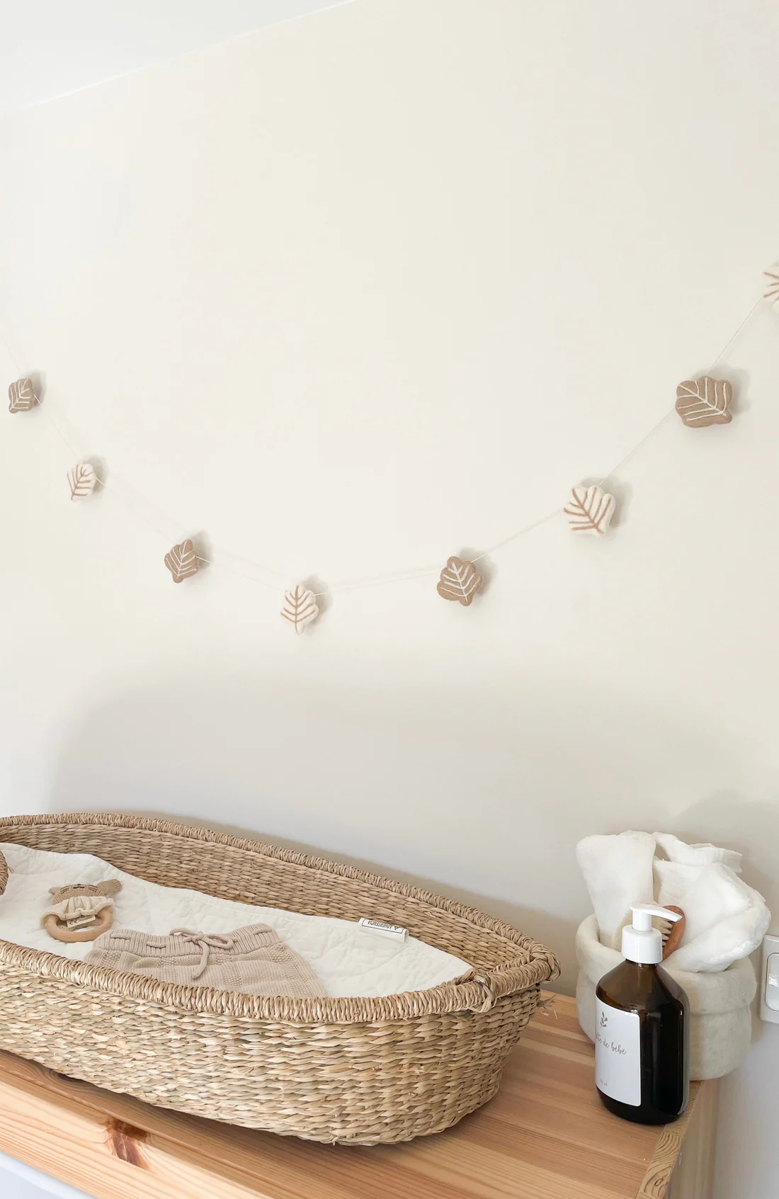 Apportez une touche de nature et de douceur dans la chambre de votre enfant avec cette guirlande feuilles en laine feutrée. Idéale pour décorer le mur, la fenêtre ou même une poignée de porte, cette guirlande ajoutera une atmosphère apaisante et naturelle à l’espace.