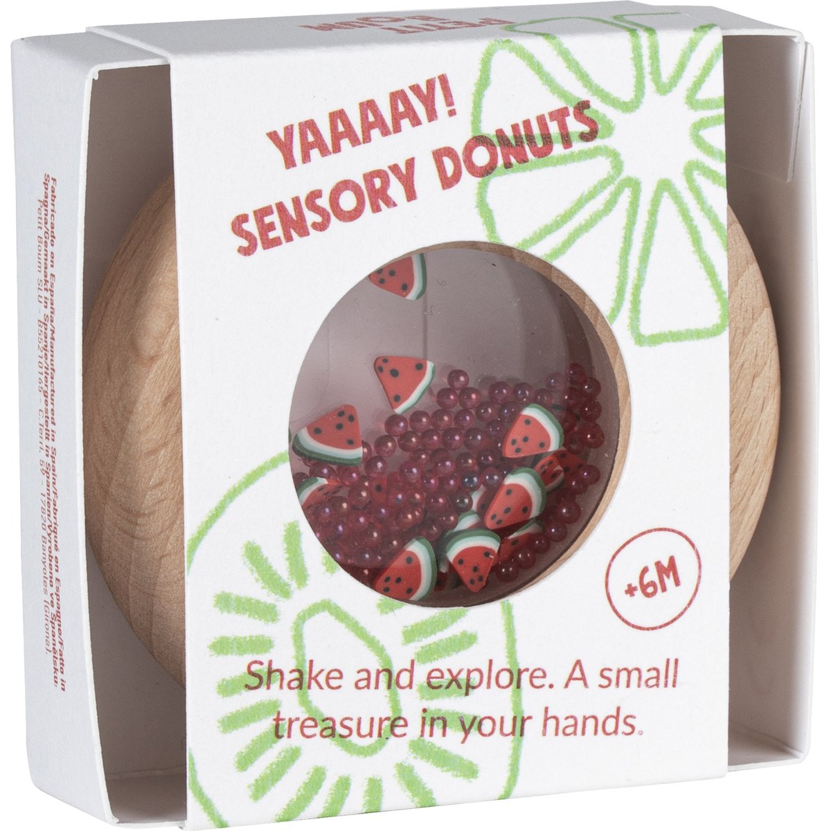 – Hochet en bois en forme de beignet, idéal pour que les mains puissent le manipuler confortablement.