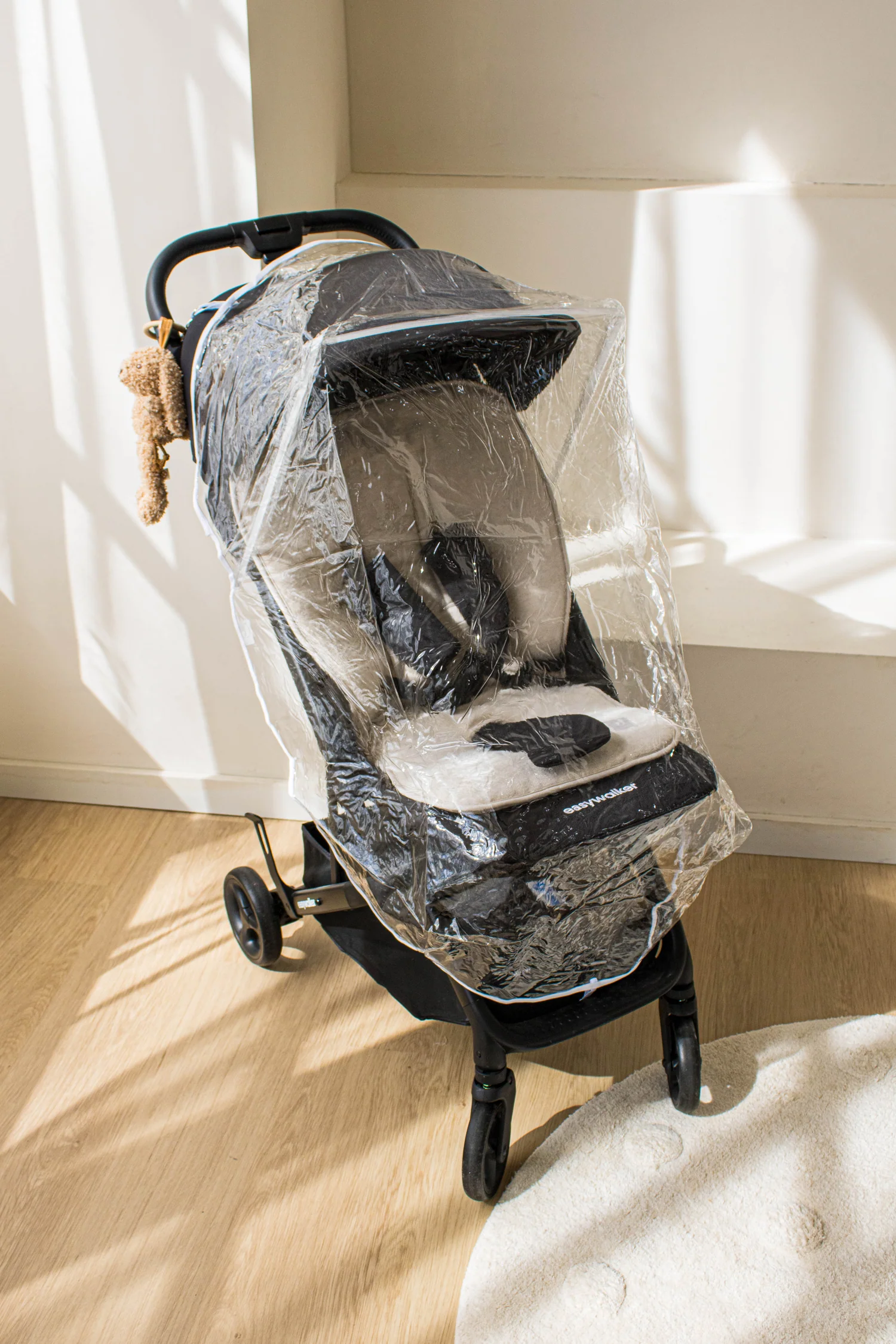 Très pratique pour protéger bébé d’une averse. Tu peux facilement l’enfiler par dessus la poussette. Également disponible pour siège auto ou poussette.