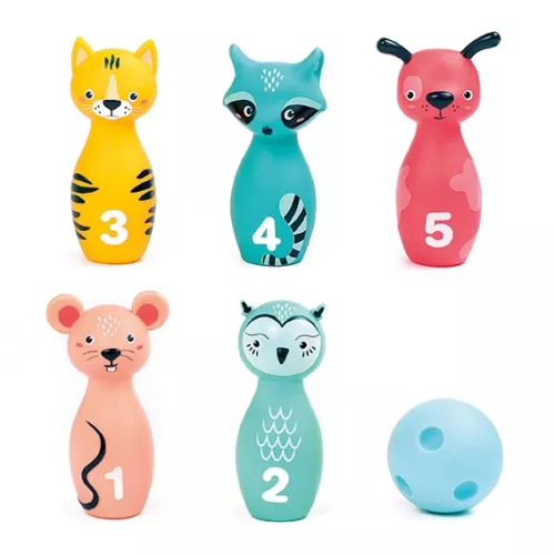 Découvrez les quilles animales ! Texture douce, prise en main facile. Jeu renversant pour développer la dextérité en silence !