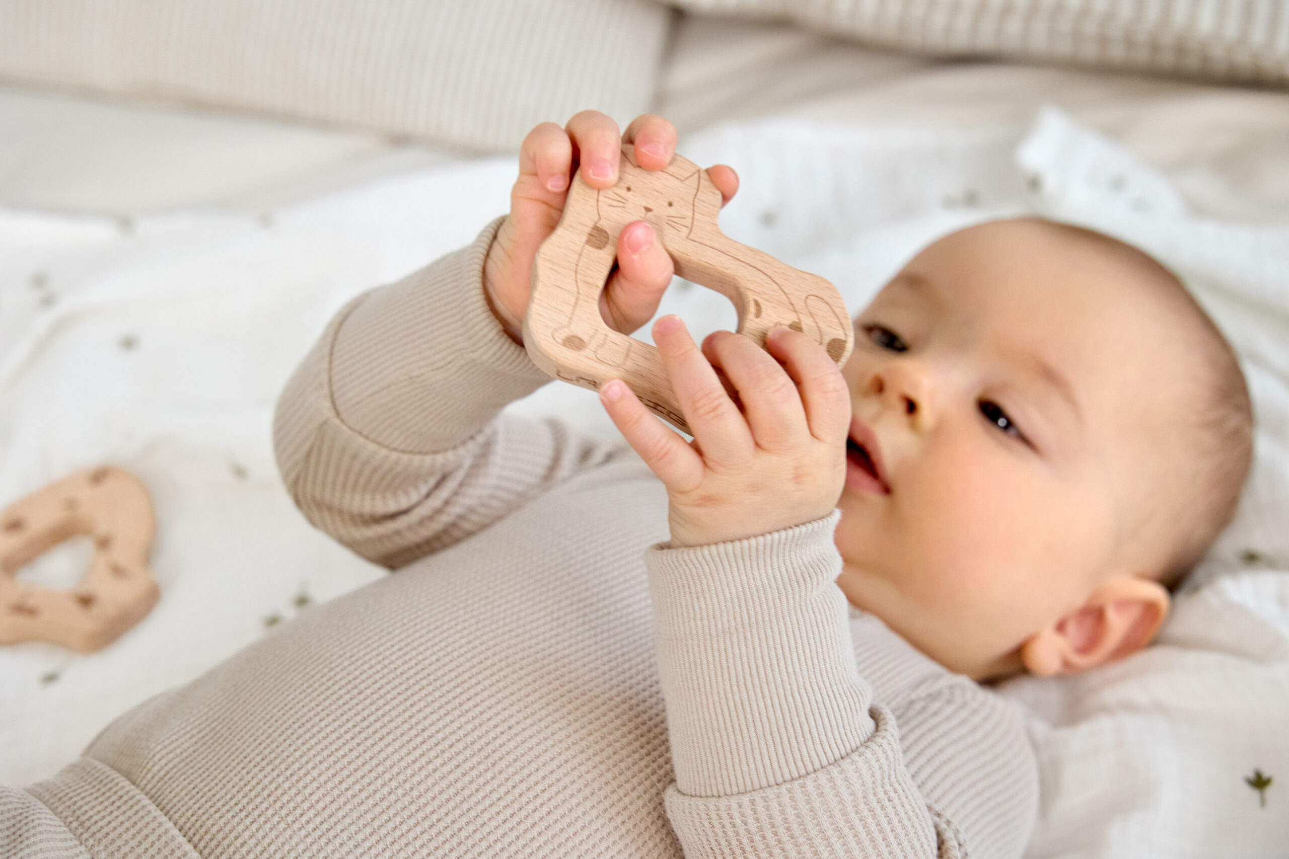 Saisir, mordre, découvrir – le set de jouets de dentition et de préhension en bois LÄSSIG stimule la coordination œil-main de manière ludique. Les adorables motifs d’animaux offrent des possibilités de découverte passionnantes aussi bien dans les mains que dans la bouche, et aident les dents à pousser tout en douceur.