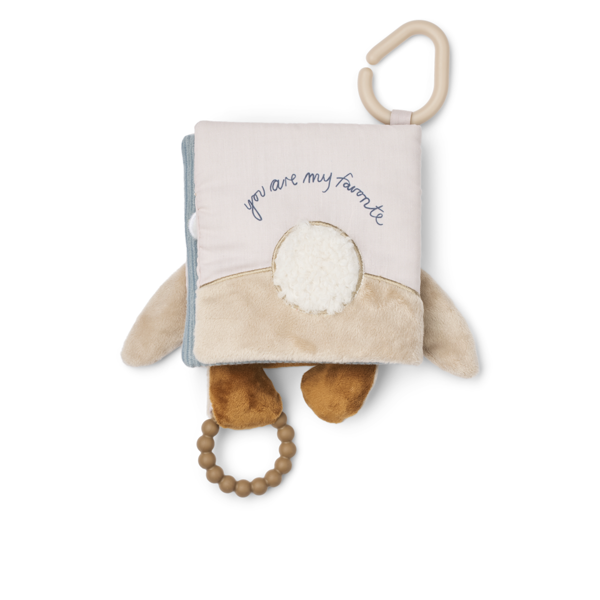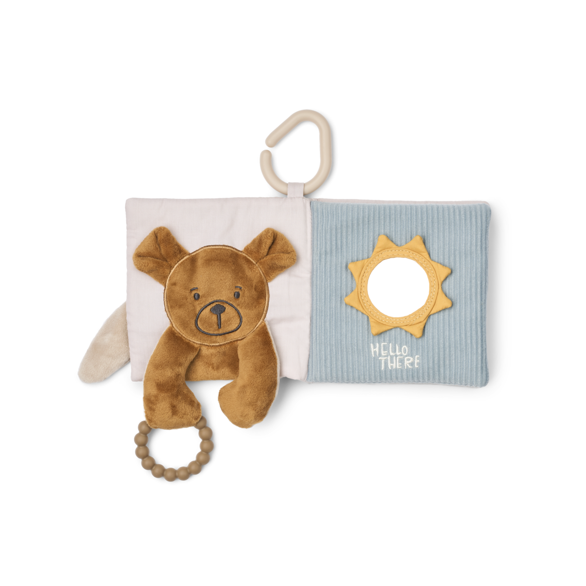 Avec un effet tissu froissé au toucher, une douce peluche et d’autres éléments sensoriels, le livre en lange FEY encourage votre petit à explorer toutes les formes et textures différentes. L’anneau de fixation en silicone le rend idéal pour l’emporter dans la poussette comme livret d’activités divertissant.
