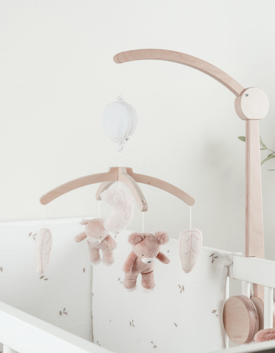 Avec ses tons naturels et ses personnages tendres, dans une teinte marron, Lily, Fluffy – ce mobile musical crée une atmosphère apaisante et enveloppante dans la chambre de bébé. Sa douce mélodie, « Lullaby » de Brahms, l’accompagne tendrement vers le sommeil, tout en décorant son univers avec poésie.