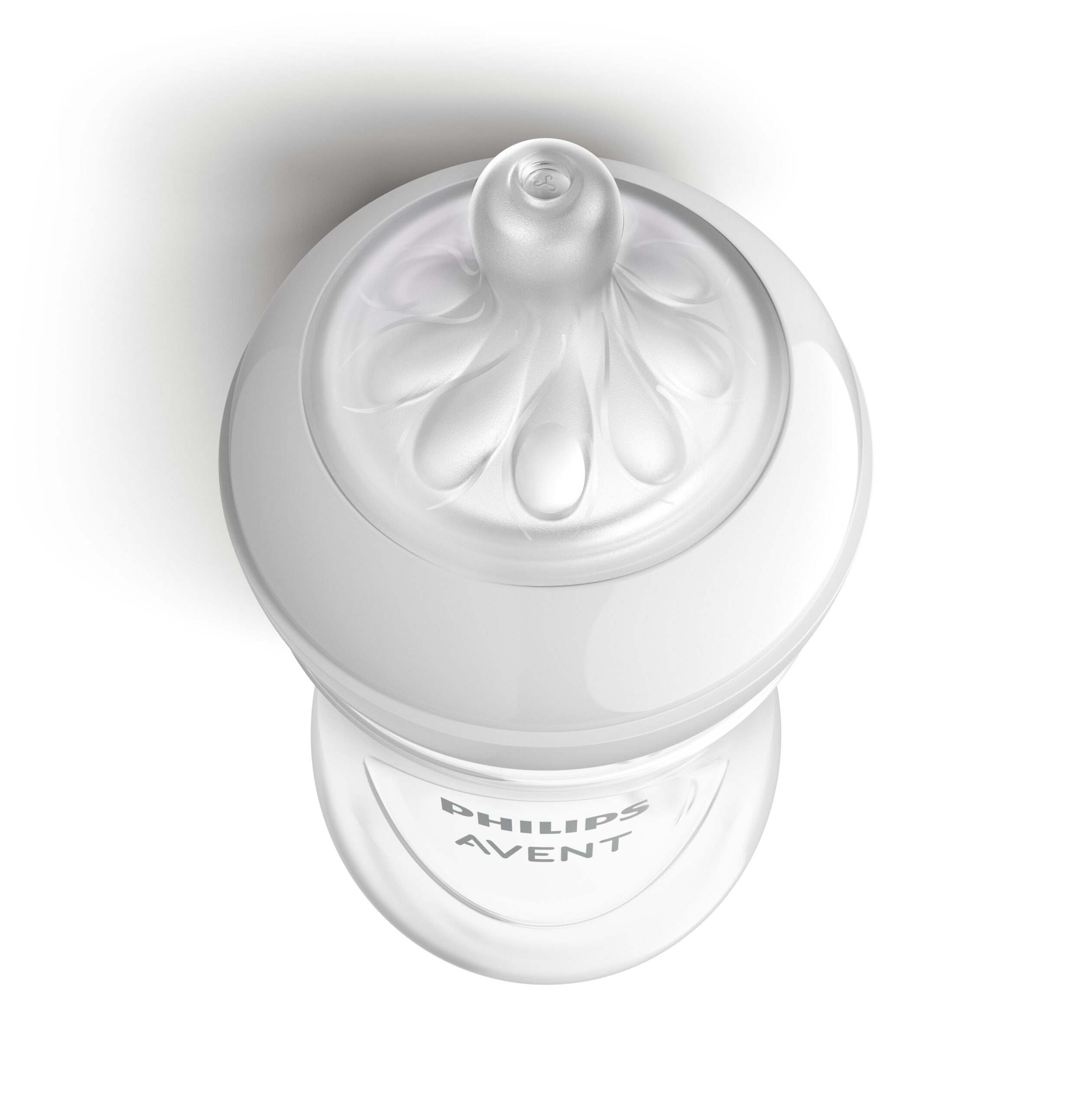 La tétine à réponse Naturelle laisse le lait s’écouler uniquement lorsque bébé boit activement. Les bébés peuvent boire, avaler et respirer à leur rythme naturel, comme au sein, ce qui facilite l’alternance sein/biberon.
