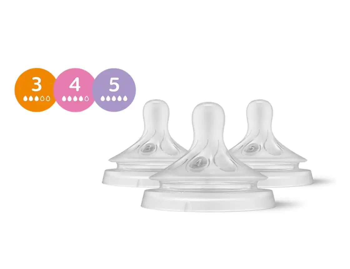 Tétine à débit moyen, tétine à débit rapide, tétine à débit extra rapide