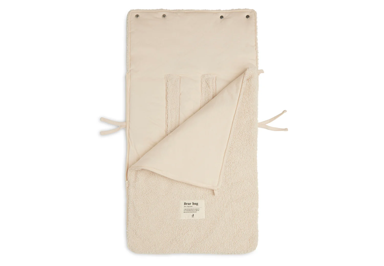 Un nid d’ange est une véritable trouvaille ! Et qu’il est mignon ce petit nid d’ange en tissu bouclé super câlin ! Tu peux facilement mettre ton bébé dans le nid d’ange en le dézippant complètement. Tu peux également sortir ton bébé du siège auto en dézippant le nid d’ange. À l’aide d’un bouton pression, tu transformes en un clin d’œil le haut du nid d’ange en un petit bonnet pour que la petite tête de ton bébé reste bien au chaud dès que tu portes le siège voiture dehors ou que tu le promènes. Afin que bébé n’ait trop chaud dans la voiture, tu peux ouvrir la fermeture éclair du nid d’ange aussi loin que nécessaire. En bref : un nid d’ange super pratique pour ton bébé. Le nid d’ange est doté d’ouvertures à l’arrière pour faciliter l’attache du harnais. Il s’agit d’un nid d’ange universel pour Maxi Cosi et toute autre marque de siège auto de catégorie 0 avec harnais à trois ou cinq points. Tu peux également utiliser le nid d’ange dans le landau. Ton bébé sera chaudement emmitouflé pour une promenade. En outre, tu peux fixer le nid d’ange à l’arrière du landau pour qu’il ne glisse pas. Idéal ! Disponible dans les couleurs biscuit et gris tempête. Ce nid d’ange est fabriqué en 100% coton biologique. La doublure est composée d’un rembourrage en fibre de polyester à 100 %. Les dimensions du nid d’ange sont de 42×82 cm. Lavable à maximum 30 °. Il faut toujours suivre les instructions figurant sur l’étiquette de lavage. Cette chancelière n’a pas de valeur TOG, car elle est conçue pour garder votre enfant au chaud lors de vos déplacements et non pour être utilisée comme sac de couchage