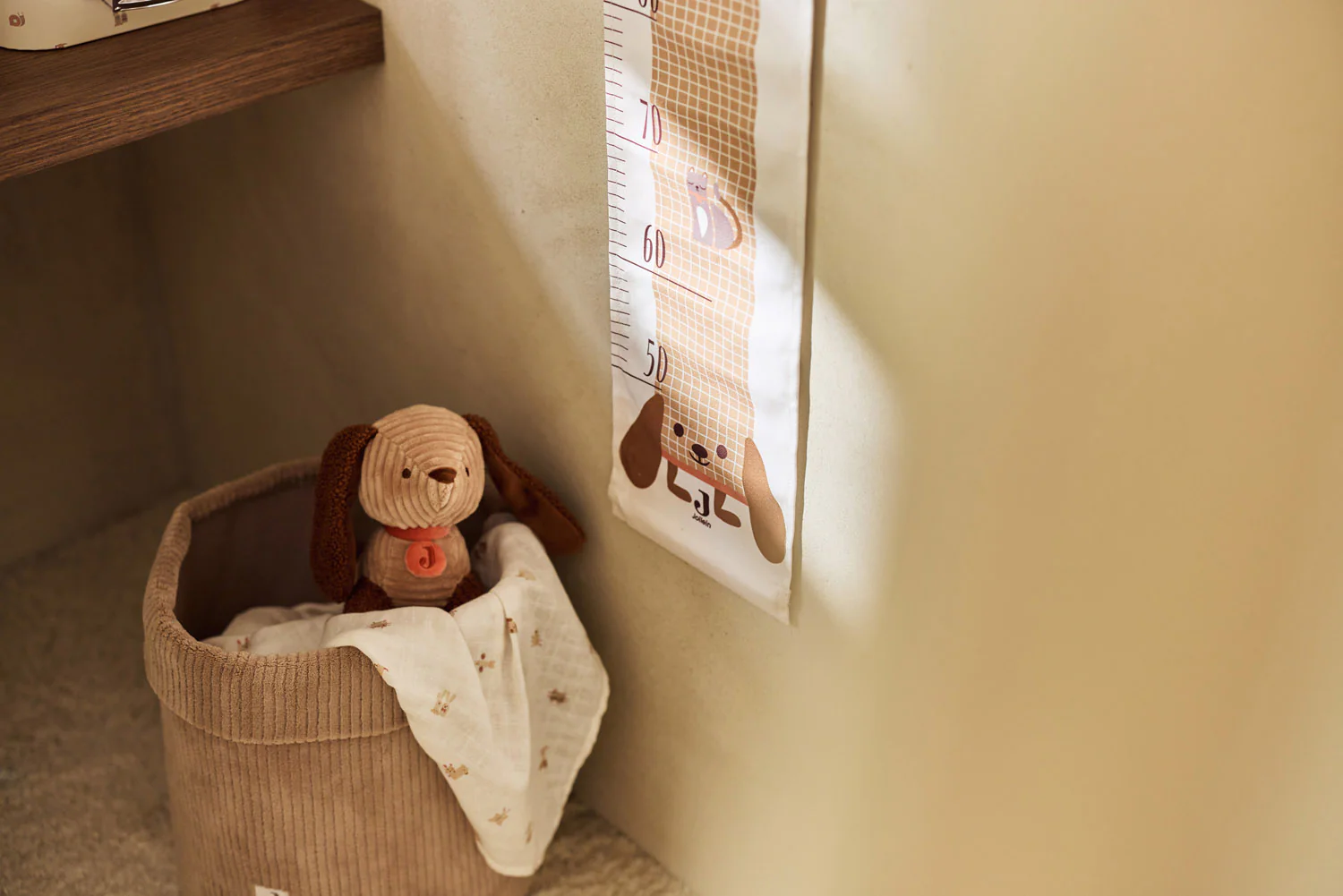 Cette peluche Diego Dog est le compagnon idéal pour bébé. Le chien est en tissu côtelé biscuit avec des oreilles en bouclé marron cuir, ultra doux à câliner. Son petit collier en Soft Terra avec le logo Jollein est adorable. Parfait pour les câlins, le jeu ou les aventures en promenade – un véritable meilleur ami pour votre mini !