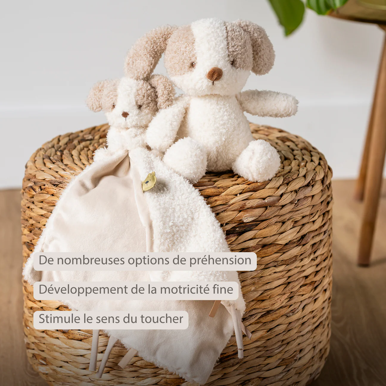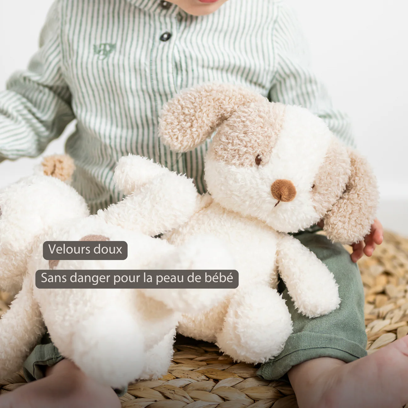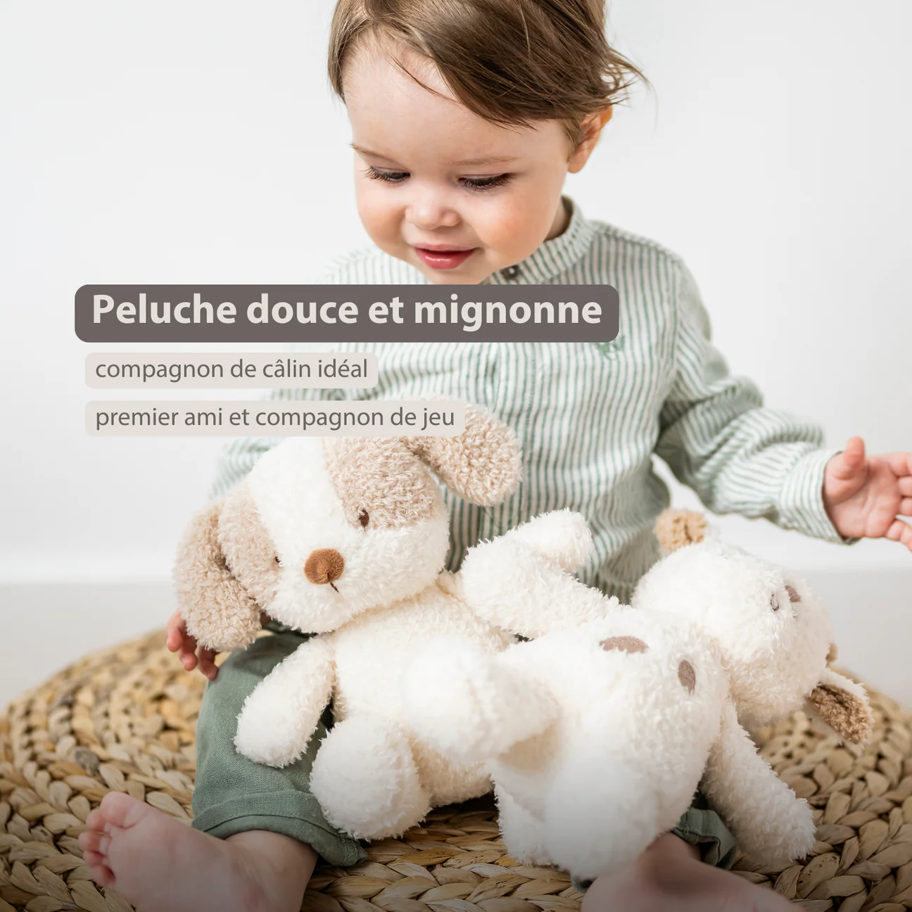 La peluche chien pour bébé de Nattou est le premier compagnon parfait pour votre petit. Avec son tissu teddy ultra doux, elle est agréable au toucher et invite à câliner et explorer sans fin. Grâce à son format compact de 25 cm et ses multiples points de préhension, elle est idéale pour les petites mains. Cette peluche adorable offre réconfort et amusement dès la naissance. Un magnifique cadeau de naissance combinant sécurité et plaisir de jeu.