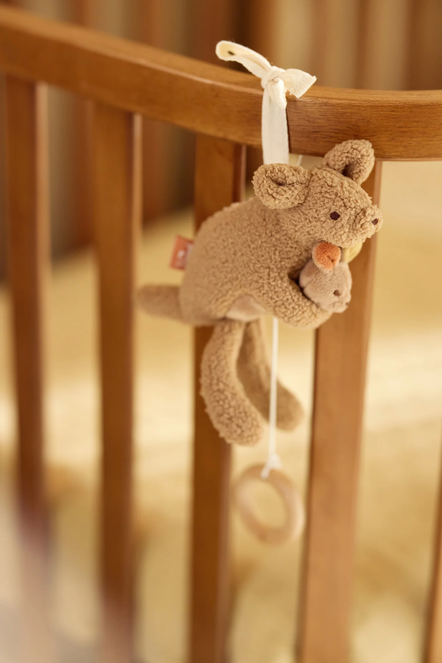 Laissez votre petit s’endormir paisiblement avec ce Peluche Musicale du thème Kangaroots. Le doux kangourou avec son bébé dans la poche apporte une sensation de chaleur et de réconfort, parfait pour s’endormir tranquillement. Tirez doucement sur l’anneau en bois et écoutez la mélodie apaisante remplir la pièce.