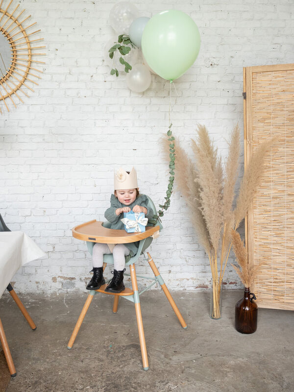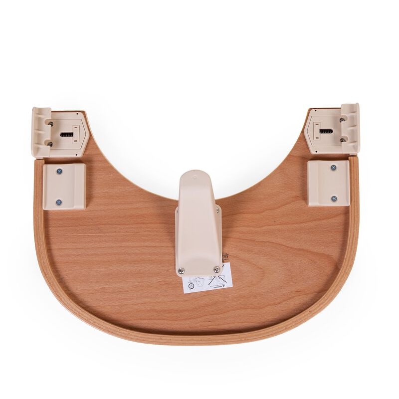 FIXATION FACILE: glissez sans effort le plateau d’alimentation sur les accoudoirs de votre chaise haute Evolu 2 ou Evolu ONE.80°, créant ainsi une table pratique pour votre tout-petit.