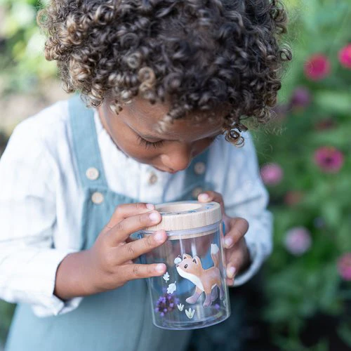 Découvrez le monde des insectes avec ce pot à insectes pratique ! Le couvercle en bois, équipé d’une loupe, vous permet de voir les plus petits détails. Le couvercle peut être facilement retiré, et le pot est décoré avec des illustrations joyeuses Forest Friends. Une carte d’insectes est incluse pour cocher tous les insectes. Le plastique transparent vous permet de voir les insectes sous tous les angles, tandis que les trous d’aération assurent la ventilation. Parfait pour les enfants curieux qui veulent explorer la nature !