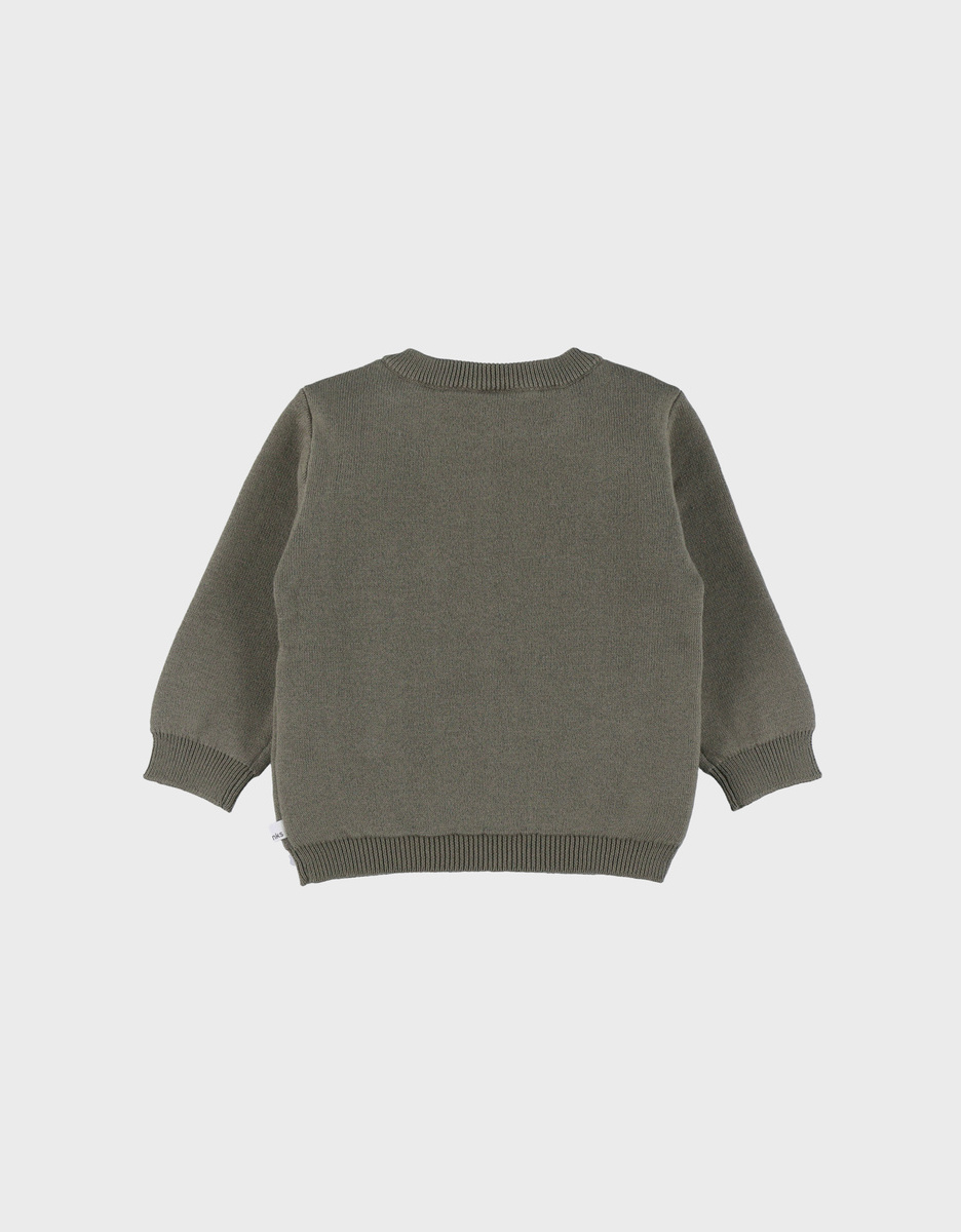 Ce pull en tricot doux et chaud offre une douceur extrême à votre bébé. Son col rond et ses finitions en bords côtes assurent un ajustement confortable, tandis que les boutons en bois sur l’épaule ajoutent un charme rustique.