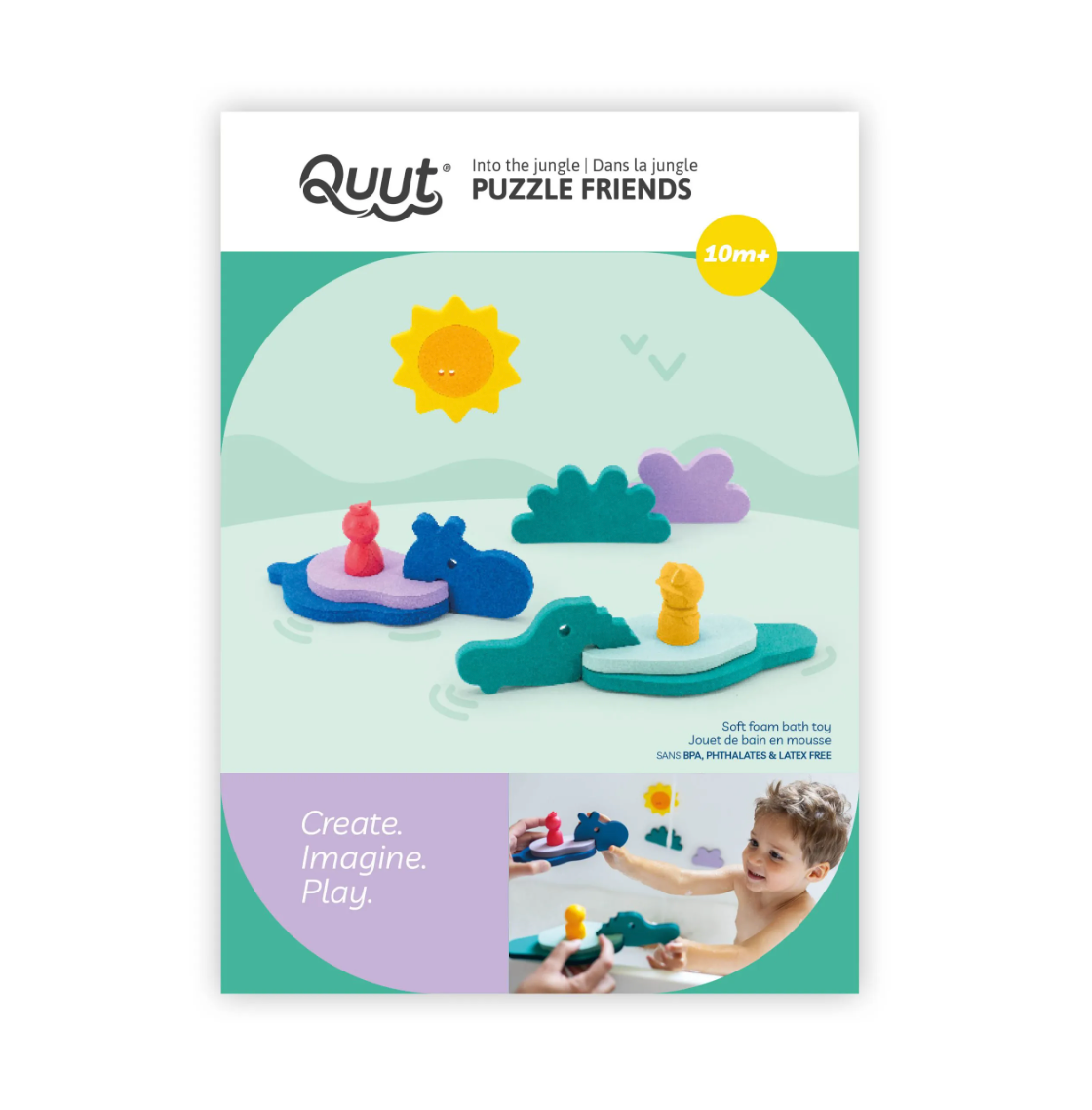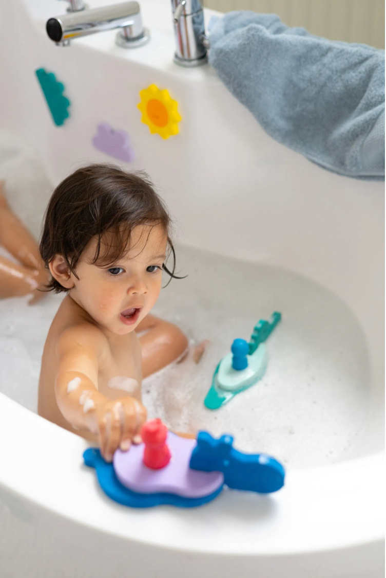 Explorez les lacs de la jungle ! Avec Croco et Hippo comme guides, chaque bain devient une expérience safari inoubliable. Stimulez l’imagination et le vocabulaire de votre enfant, découvrez de nouveaux sons et développez sa motricité ! Toutes les formes sont en mousse EVA souple, ce qui leur permet de flotter. Le coffret comprend également deux marionnettes à doigts.