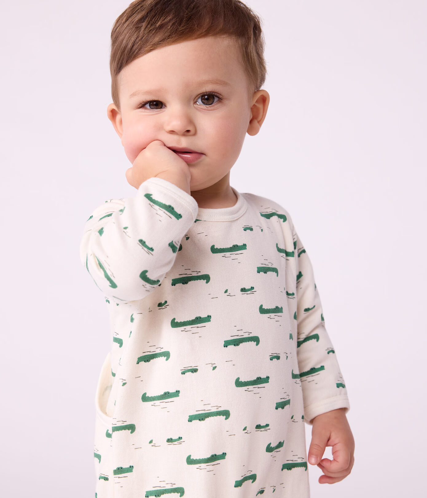 Pyjama bébé en molleton gratté ouverture au dos imprimé croco