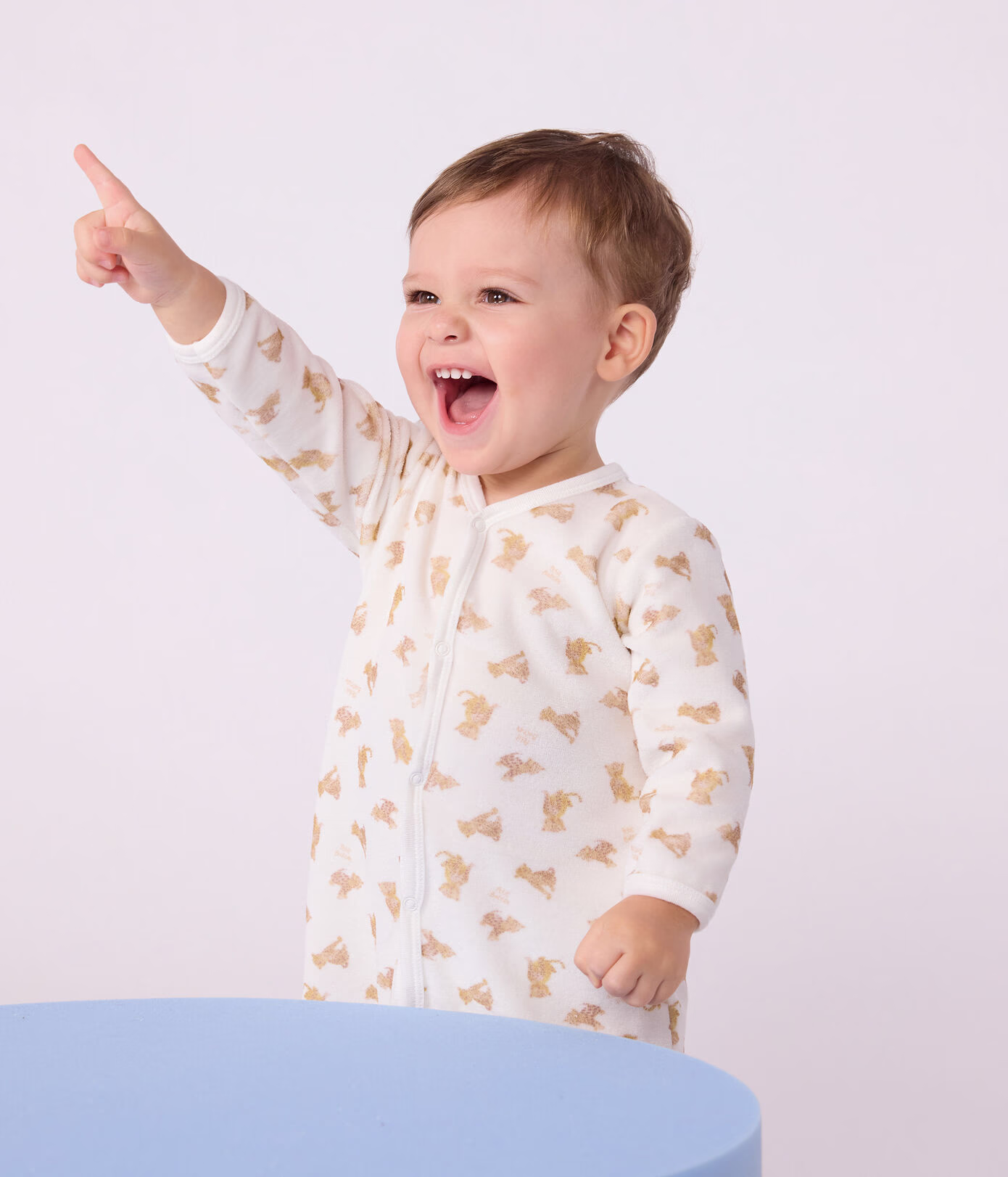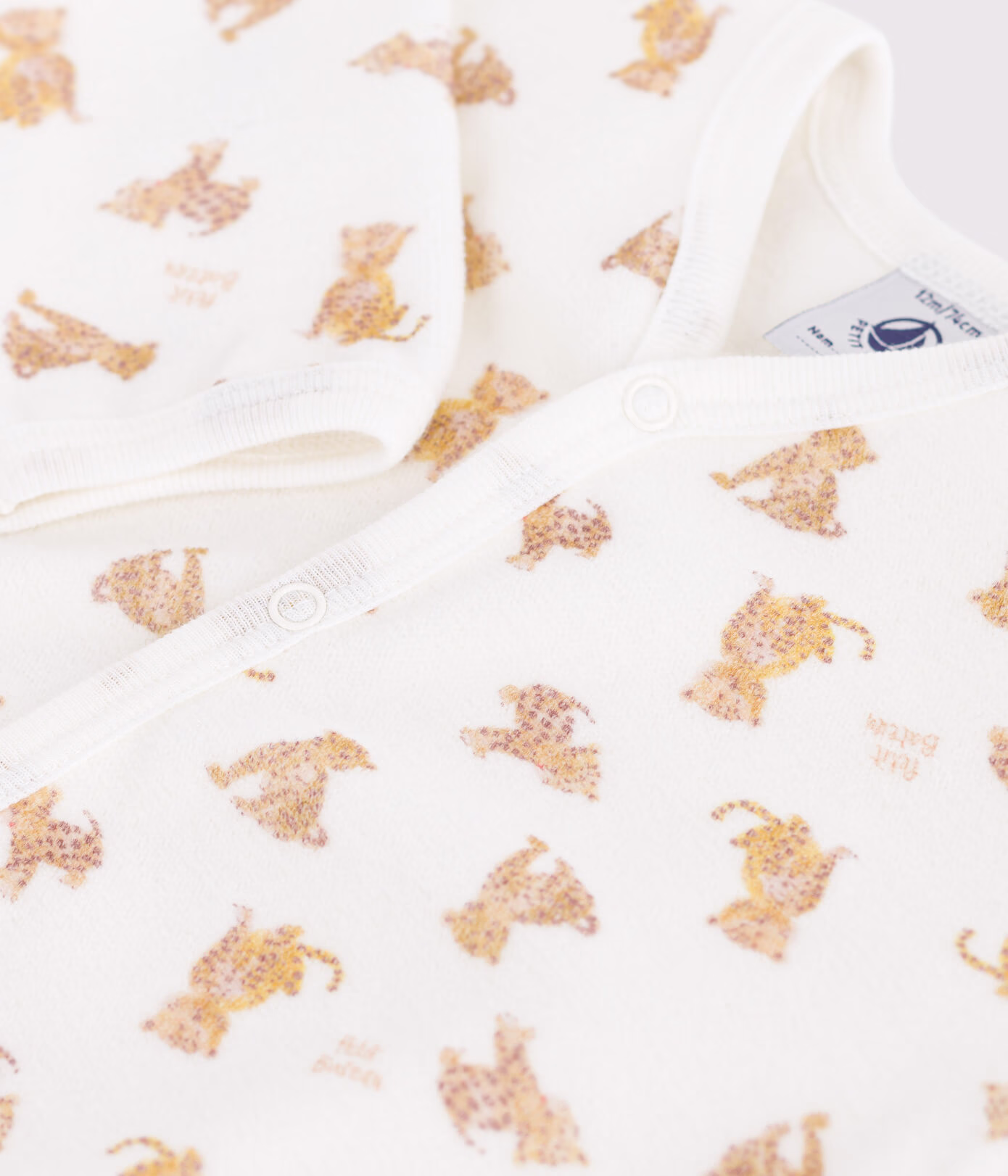 L’ouverture du pyjama se fait par boutons-pression sur le devant et à l’entrejambe.