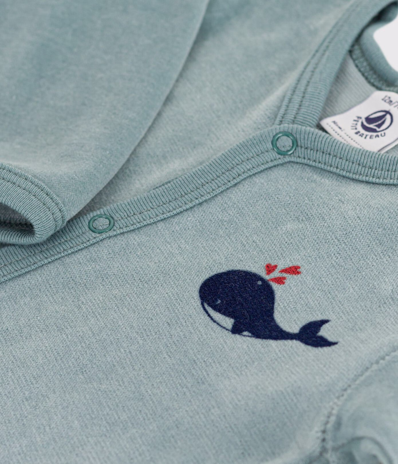 • L’ouverture du pyjama se fait par boutons-pression sur le devant et à l’entrejambe.