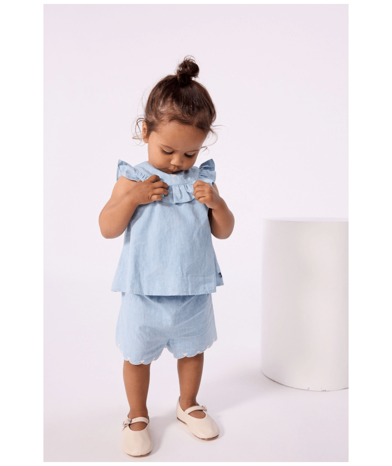 Short bébé en chambray brodé