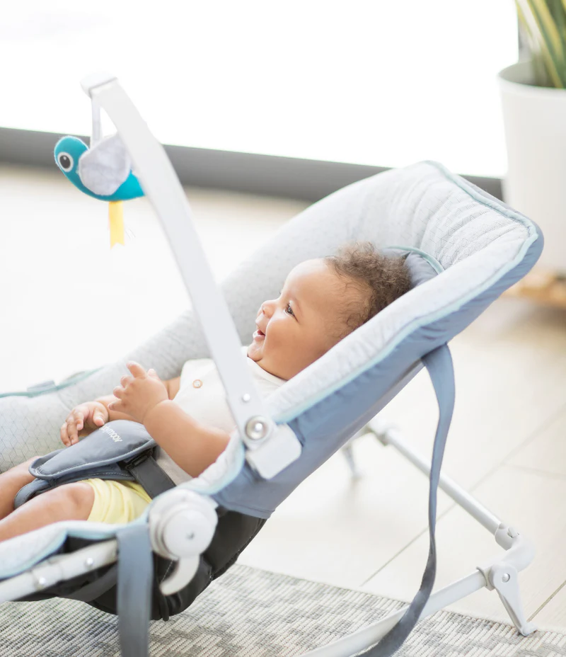 Le dossier du Transat Graphik s’incline facilement sur plusieurs positions pour garantir maintien et confort dès la naissance. Passez d’un transat fixe à une balancelle en relevant d’un simple geste les pieds antidérapants.